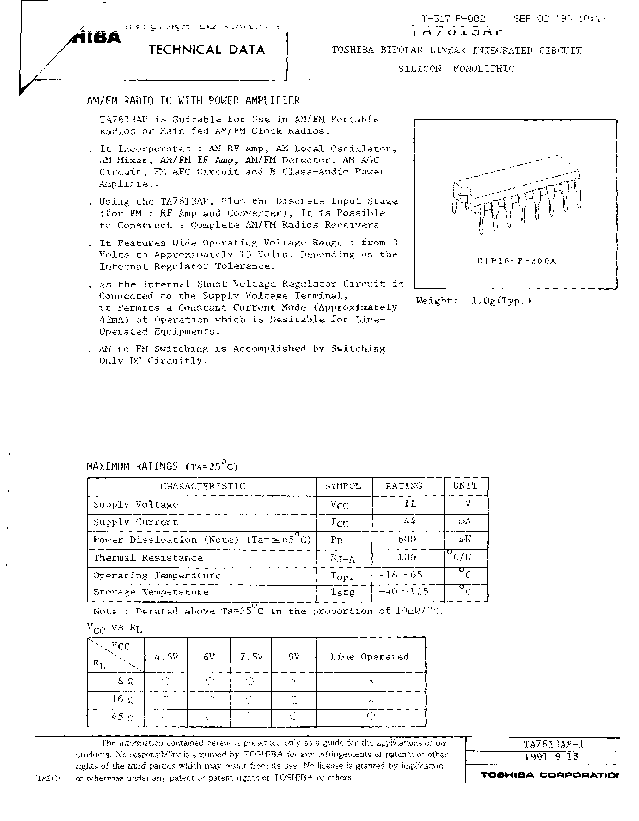 TA7613AP) call Toshiba America Electronic Components, Inc at (714)